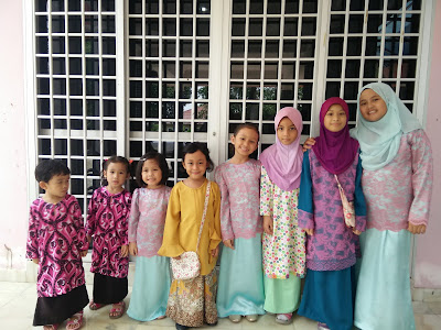 My dad and mum brown-pink while adik2 only Imran cannot join us on the first day of raya coz he had to be on standby dekat estate.